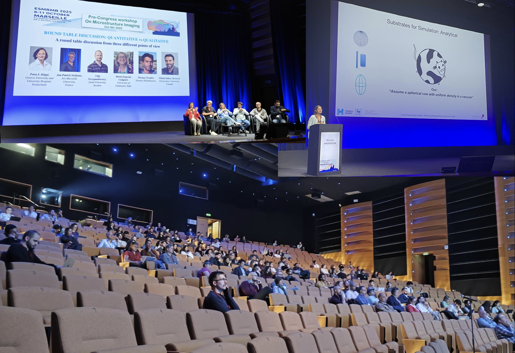 The MaP team were a core part of the 2025 ESMRMB pre-congress workshop on Microstructural Imaging in Marseille, France. The day was a great success with many brilliant talks and a very thought provoking panel discussion. Mariam gave a keynote talk titled: Virtual Tissues, Real Insights: Simulating Biological Microstructure for MRI.